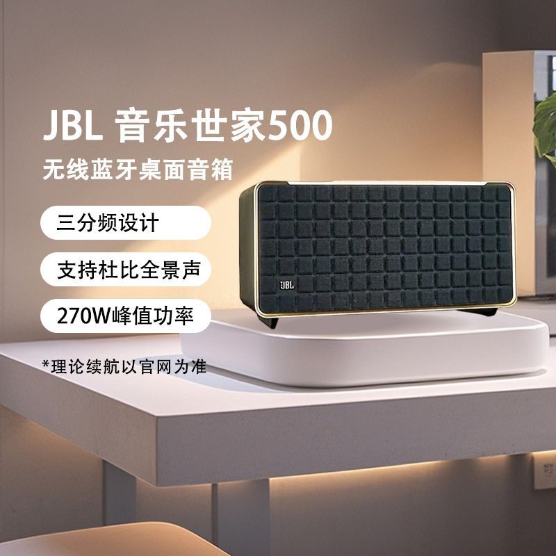 JBL音乐世家500无线蓝牙音箱震撼来袭,百年音频技术沉淀打造高保真音质,澎湃低音与清澈高音完美融合,无论是摇滚乐的激情节奏还是古典乐的细腻层次都能精准呈现。采用经典复古设计,木质箱体搭配金属网罩,兼具质感与耐用性,轻松融入家居、户外等多种场景。支持蓝牙无线连接,操作便捷,续航持久,真正实现便携与性能的平衡。