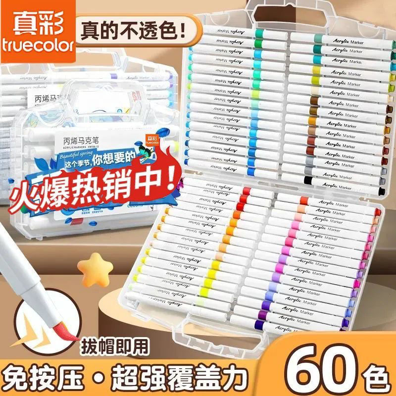 真彩truecolor新款丙烯马克笔学生版限时特惠来袭!专为一年级及幼儿园孩子设计,色彩鲜艳易上色,水性环保材质安全无毒,画笔可叠色表现力强,轻松激发孩子的绘画兴趣与创造力。无论是日常涂鸦还是美术课堂都能得心应手。