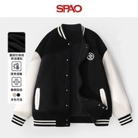 SPAO复古学院风撞色棒球服外套时尚有型,经典翻领设计搭配活力撞色拼接,尽显青春学院气质,无论是日常通勤还是休闲出街都能轻松驾驭。面料舒适挺括不易皱,内里柔软保暖,春秋季节穿搭正合适,细节做工精致,袖口和下摆采用弹性收口设计,提升整体穿着体验。