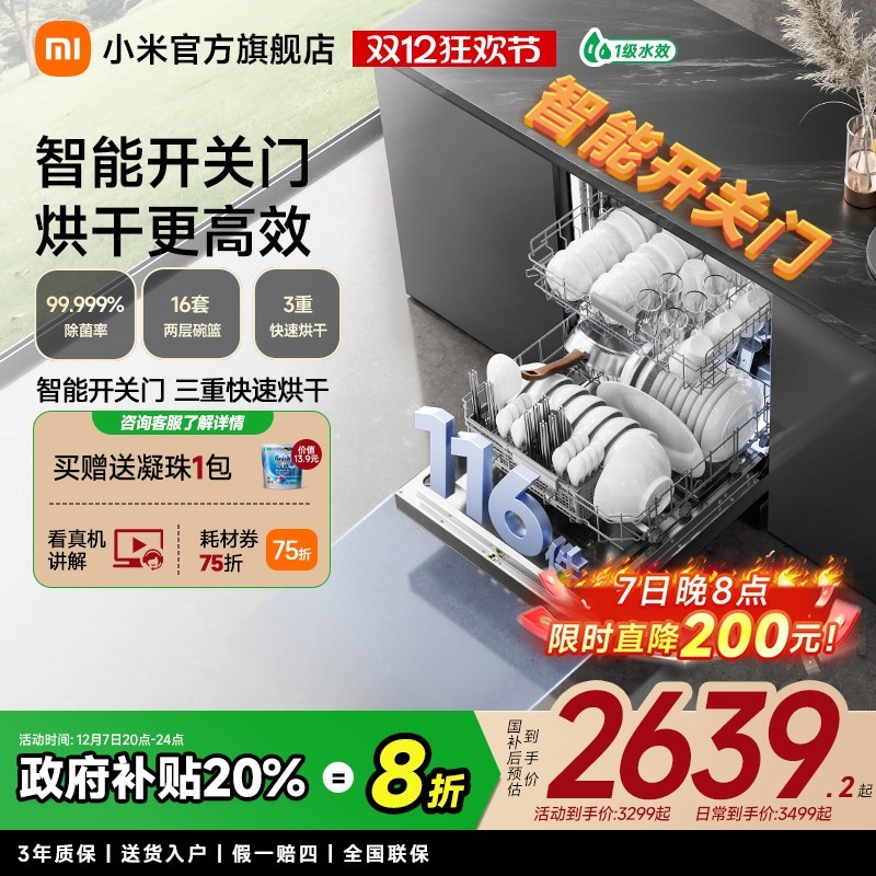 MIJIA米家洗碗机嵌入式家用智能热风烘干大容量全自动16套N1现震撼促销到手价仅2799.2元原价4499元直降超千元现活动售价4499元叠加满4498元减1000元优惠再享补贴20%起减699.8元多重福利叠加下单1件实付低至2799.2元性价比爆棚该款洗碗机采用嵌入式设计节省厨房空间支持16套餐具一次性清洗大容量满足全家聚餐需求搭载智能洗涤系统可根据脏污程度自动调节水压与模式配合高温煮洗与热风烘干双重杀菌除菌率高达99.99%餐具洗后干爽洁净更健康安全APP远程操控功能让您随时随地启动或预约洗涤操作便捷适配多种安装环境是现代家庭提升生活品质的理想之选现在入手正当时省钱省心更省力